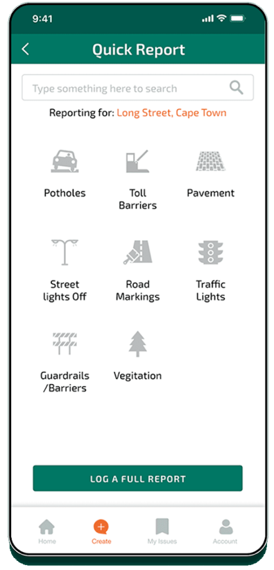 Introducing the NEW SANRAL Pothole App. Log potholes with ease using our new app interface, simply specify the location, provide a description, and attach images. Report potholes directly with the South African National Roads Agency, we will capture your report and escalate it for resolution whilst keeping you informed via the app.